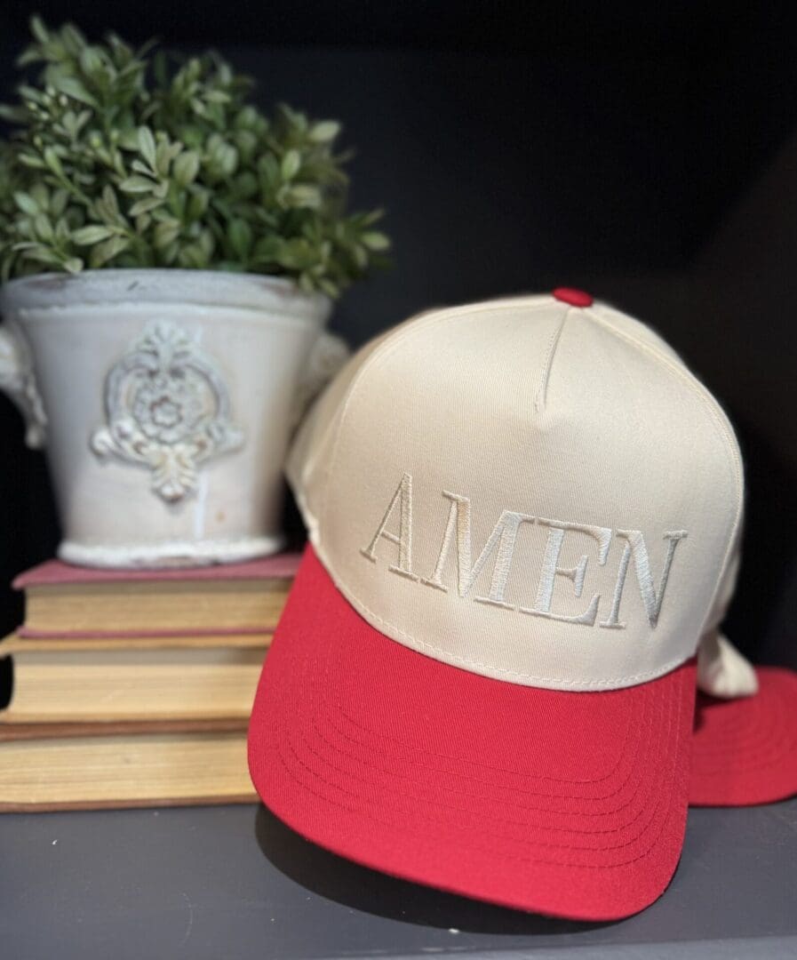 Red & Cream Monogrammed “Amen” Hat – Custom Embroidered Cap 🧢✨